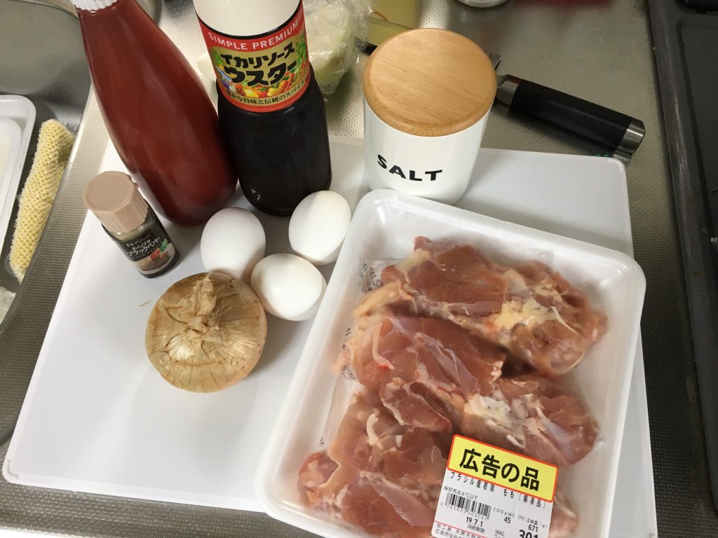 ①鶏肉を適度な大きさに切り、たまねぎは粗みじんに切る