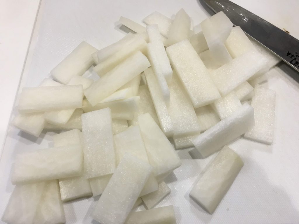 ③大根が透明になり、水分が少なくなるまで煮込み、最後に水溶き片栗粉でとろみをつける