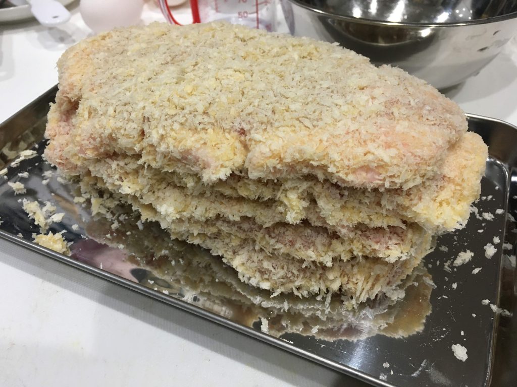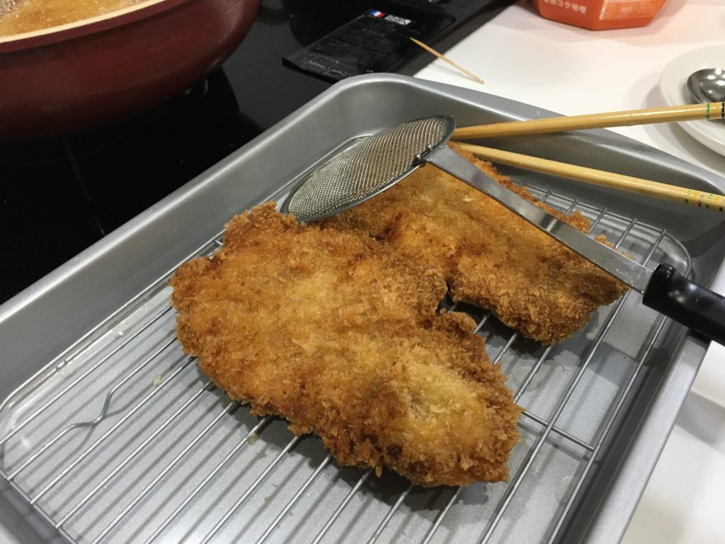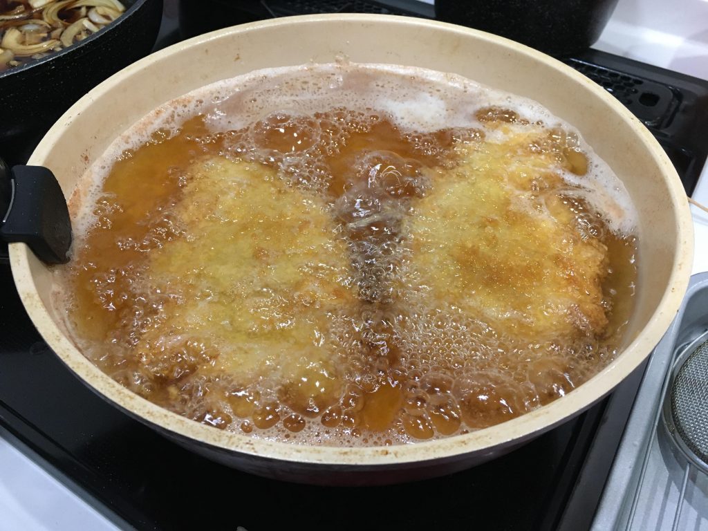 ⑤豚肉を180度の油できつね色になるまで揚げていく(途中裏返す)