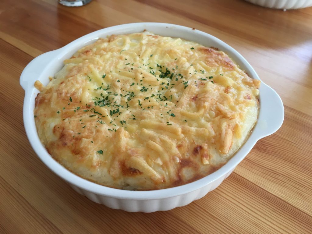 ⑤ご飯の上にホワイトソースを入れチーズを敷き詰め、好みでパン粉をのせる