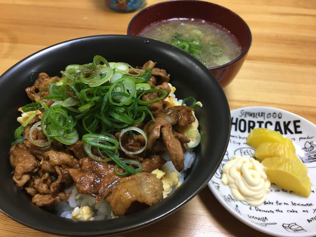⑥どんぶりにご飯、玉子、肉、刻みネギをのせ、好みで焼き肉のたれを混ぜた刻みネギをトッピングする