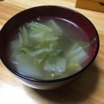 【材料】 水 (800ml) 白菜 (適量) 長ネギ (適量) 【調味料】 中華あじ(粉末) コショウ (少々) 片栗粉 (水溶き片栗粉 50ml ) 【作り方】 ①沸騰した水にカットした白菜と長ネギ …